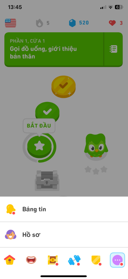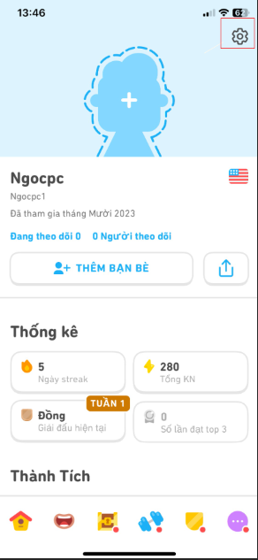Thì như trước là mình đã đăng ký tài khoản rồi, giờ cứ thế bật lên là sử dụng thôi,. Tuy nhiên, lúc làm hướng dẫn đăng nhập thì mình cần phải đăng xuất ra để đăng nhập lại. Vầy các bước đăng xuất tài khoản Duolingo như sau: